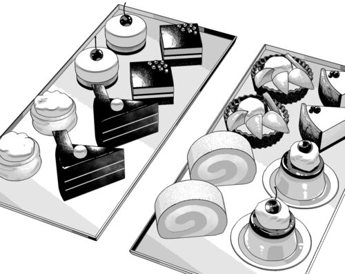 先日カップケーキの3Dモデルをアップした際、仕上げサンプルとして簡単な加筆をしてみて結構楽しかったのと、「食べ物を描く時に使えるブラシ素材(漫画向け)」をまとめて実際何か具体例をやってみたいと思っていたところ、タイミング良く良い感じのケーキ…