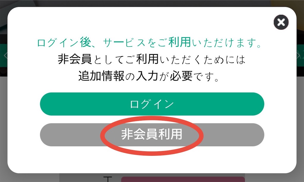 下のボタンをクリックすると、非会員のままゲストとして一時的に利用出来ます。