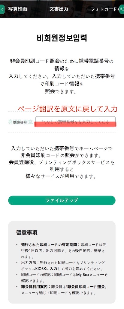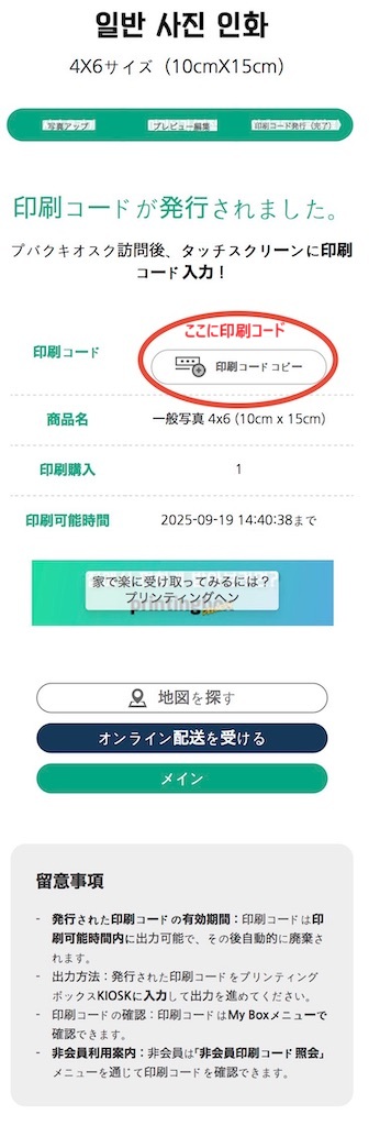 この印刷コードを共有することで、韓国在住の方が対応印刷機のあるコンビニ等(※)でプリント出来るようになります。