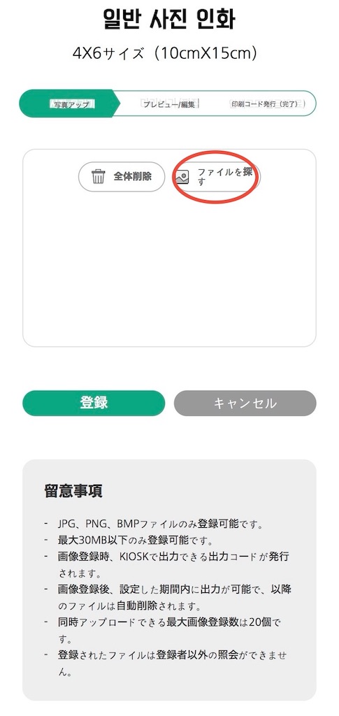 プリント出来る店舗も、トップページ下部にある地図マークから確認出来ます。韓国国内のみですが、どこで印刷が可能なのか分からない韓国在住の方がいたら、そちらを紹介してあげてください。